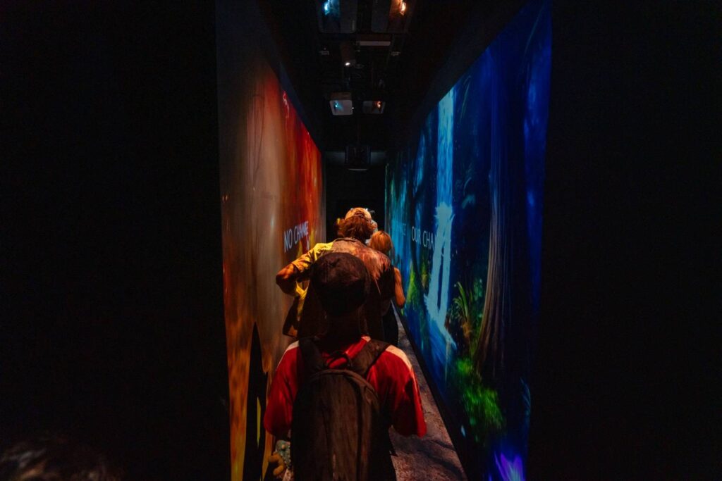 ห้องแรก จะได้สัมผัสสถานการณ์จำลองภัยพิบัติจากการเปลี่ยนแปลงสภาพภูมิอากาศที่กำลังเกิดขึ้นถี่ขึ้นในมุมต่างของโลก รุนแรงขึ้น ตั้งแต่ ไฟป่า สัตว์ป่าสูญพันธ์ุ ความแห้งแล้ง น้ำท่วม น้ำแข็งขั้วโลกละลาย บทสรุปกระตุกให้เห็นผลลัพธ์มนุษยชาติไม่อาจดำรงอยู่ได้ หากเราไม่เริ่มเกิดการเปลี่ยนแปลงลงมือทำอย่างจริงจัง เพื่อหยุดเวลาโลกแตก