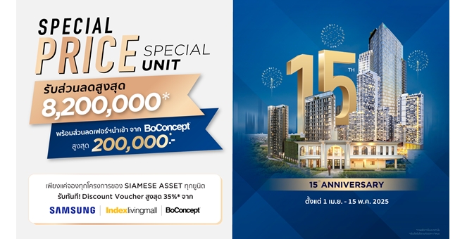 “ไซมิส แอทเสท” ฉลองครบรอบ 15 ปี จัดแคมเปญ “SPECIAL PRICE SPECIAL UNIT” มอบข้อเสนอสุดพิเศษที่ไม่ควรพลาด