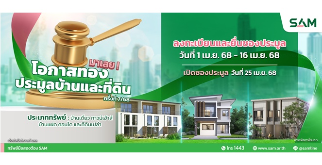 star_borderModal Upgrade PackageModal Upgrade PackageSAM เฉลิมฉลองครบรอบ 25 ปี พร้อมส่งมอบโอกาสเพื่อคนไทย เริ่มต้นใหม่อย่างยั่งยืน คัดทรัพย์เด่นเพื่ออยู่อาศัย ไม่เกิน 10 ลบ. พร้อมปรับลดราคาพิเศษและแคมเปญเด็ด เปิดประมูล 25 เม.ย.นี้10 เม.ย. 2568 11:44 น.