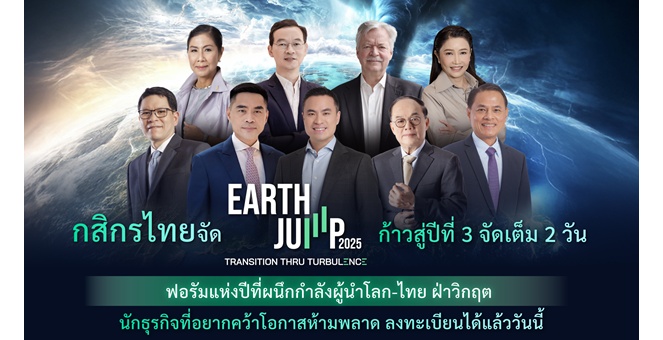 star_borderModal Upgrade PackageModal Upgrade Packageกสิกรไทยจัด EARTH JUMP ก้าวสู่ปีที่ 3 วันที่ 28-29 พ.ค. 68 ฟอรัมแห่งปีที่ผนึกกำลังผู้นำระดับโลก-ไทย ฝ่าวิกฤต นักธุรกิจที่อยากคว้าโอกาสห้ามพลาด ลงทะเบียนได้แล้ววันนี้8 เม.ย. 2568 11:31 น.