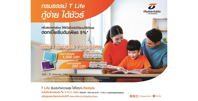 star_borderModal Upgrade PackageModal Upgrade Packageที ไลฟ์ ประกันชีวิต เปิดแคมเปญ `กรมธรรม์ T Life กู้ง่าย ได้ชัวร์`แปลงกรมธรรม์เป็นเงินสด เสริมสภาพคล่องทางการเงินให้ลูกค้า ดอกเบี้ยเริ่มต้น 5% ต่อปี พร้อมรับบัตรกำนัลโลตัส1 เม.ย. 2568 10:57 น.