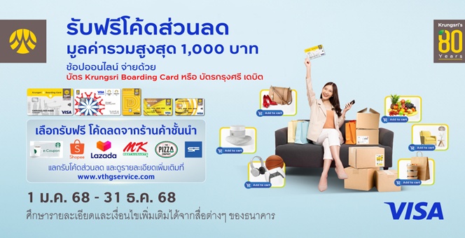 star_borderModal Upgrade PackageModal Upgrade Packageรับฟรีโค้ดส่วนลดร้านค้าชั้นนำ มูลค่ารวมสูงสุด 1,000 บาท เมื่อใช้จ่ายออนไลน์ด้วยบัตร Krungsri Boarding Card หรือบัตรกรุงศรี เดบิต25 มี.ค. 2568 14:51 น.