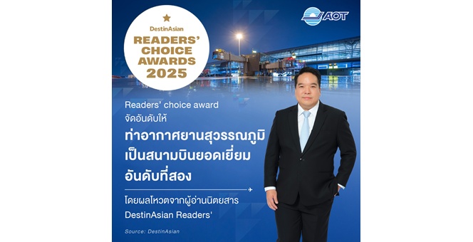 • AOT นำทัพท่าอากาศยานสุวรรณภูมิสู่ความสำเร็จ! คว้าอันดับ 2 สนามบินยอดเยี่ยม จาก DestinAsian Readers` Choice Awards 2025