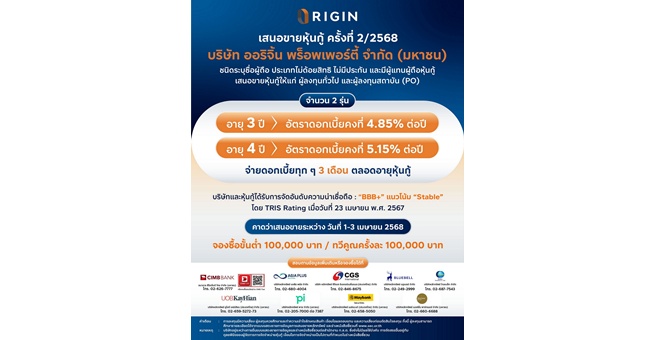 star_borderModal Upgrade PackageModal Upgrade PackageORI ยื่นไฟลิ่งเสนอขายหุ้นกู้ล็อตใหม่ 2 รุ่น ชูดอกเบี้ย 4.85% - 5.15% ต่อปี แบ็คล็อกแกร่ง 44,562 ล้านบาท ปี’67 กวาดขายต่างชาติกว่า 5,700 ล้านบาท5 มี.ค. 2568 11:09 น.