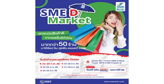 star_borderModal Upgrade PackageModal Upgrade PackageSME D Bank เคียงข้างดูแลผู้ประกอบการ หนุนเพิ่มรายได้ขยายตลาด จัดโครงการ “SME D Market” เปิดพื้นที่ขายสินค้าฟรี ประเดิม 24-25 ก.พ.นี้19 ก.พ. 2568 14:37 น.