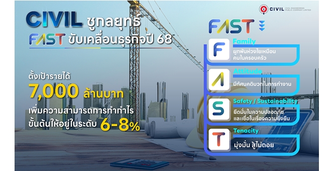 star_borderModal Upgrade PackageModal Upgrade PackageCIVIL ชูกลยุทธ์ FAST ขับเคลื่อนธุรกิจปี 68 ตั้งเป้ารายได้โตต่อเนื่อง - เพิ่มอัตราการทำกำไร17 ก.พ. 2568 13:31 น.