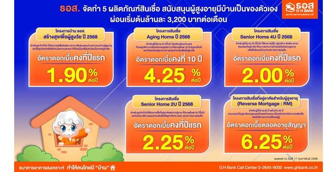 star_borderModal Upgrade PackageModal Upgrade Packageธอส. พร้อมยกระดับคุณภาพชีวิตผู้สูงอายุให้มีบ้านเป็นของตัวเอง จัด 5 ผลิตภัณฑ์สินเชื่ออัตราดอกเบี้ยพิเศษ ผ่อนชำระเริ่มต้นเพียงล้านละ 3,200 บาทต่อเดือนเท่านั้น!17 ก.พ. 2568 14:21 น.