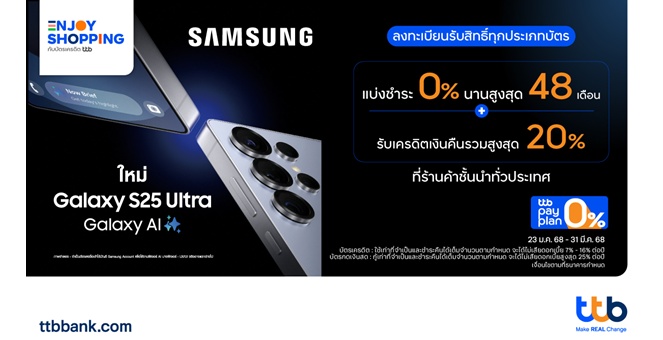 star_borderModal Upgrade PackageModal Upgrade Packageบัตรเครดิต ttb มอบโปรโมชันเกินคุ้ม ซื้อ Samsung Galaxy S25 Series ผ่อน 0% นาน 48 เดือน พร้อมรับเครดิตเงินคืนสูงสุด 20%14 ก.พ. 2568 11:18 น.