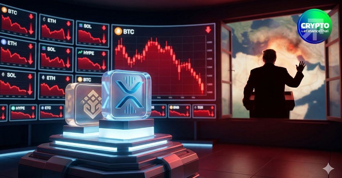 ตลาดคริปโทฯ เจอพายุลูกใหญ่กวาดมูลค่าหายวับ 1 แสนล้านดอลลาร์! หลังประธานาธิบดี โดนัลด์ ทรัมป์ แถลงการณ์จ่อลุยไฟสงครามอิหร่านต่อ ฉุดบิตคอยน์ดิ่งกว่า 3,000 ดอลลาร์ แก๊งค์ Altcoin ไม่รอดแต่ไฮไลต์กลับตกเป็นของ XRP ที่แม้ราคาจะร่วง แต่ก็ใช้จังหวะนี้พลิกแซง BNB ในด้านมูลค่าตลาดไปได้เฉย