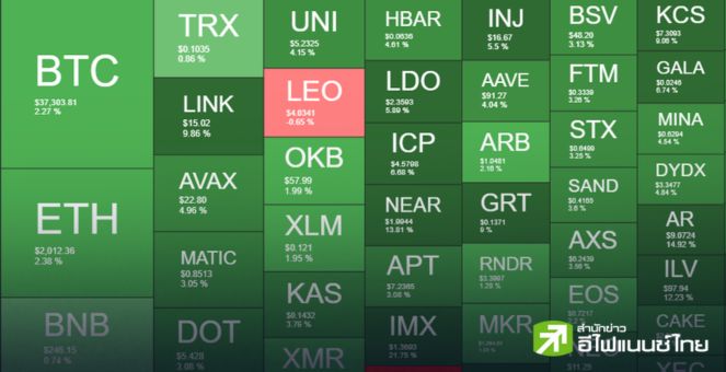 เกือบได้เฮ! บิตคอยน์จ่อ 38,000 ดอลลาร์เช้าวันนี้ ดึงตลาดขึ้นยกแผง