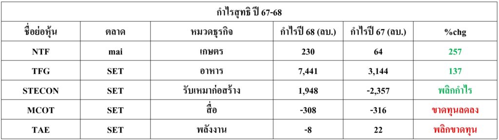 NTF และ TFG กำไรสุทธิปี 68 เติบโตก้าวกระโดดจากปี 67 ระดับ 257% และ 137% ตามลำดับ