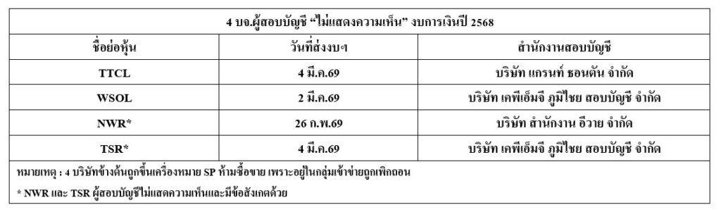 4 บจ. ผู้สอบบัญชี “ไม่แสดงความเห็น” ในงบการเงินปี 68 ประกอบด้วย