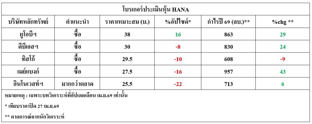 HANA แม้ทุกโบรกเกอร์จะยังแนะนำ “ซื้อ” แต่ราคาปัจจุบันเกินมูลค่าเหมาะสมไปแล้ว