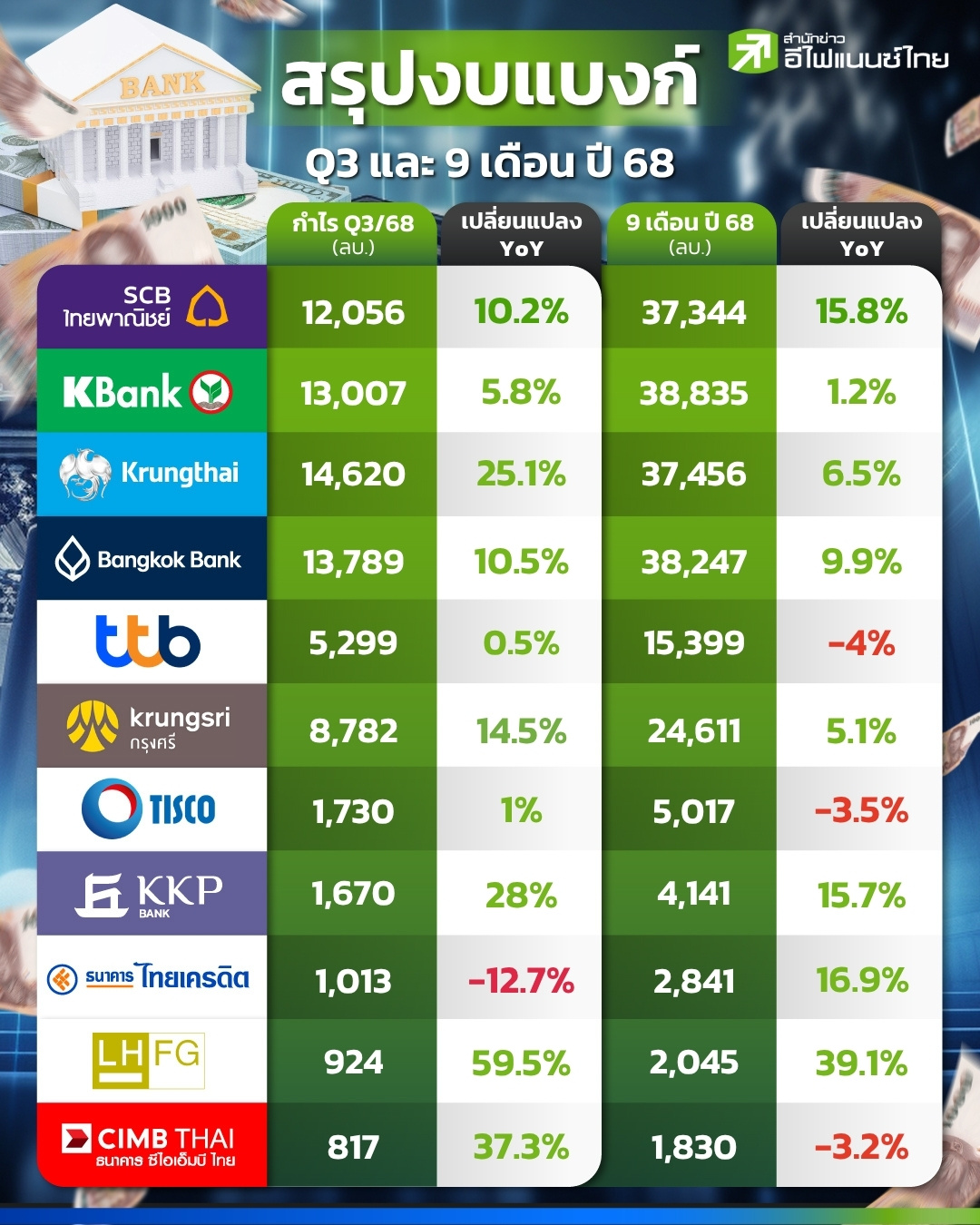 star_borderModal Upgrade Packageแบงก์ไทย Q3/68 กวาดกำไรรวม 7.37 หมื่นลบ.โต 13% KTB แชมป์22 Oct 2025 08:46