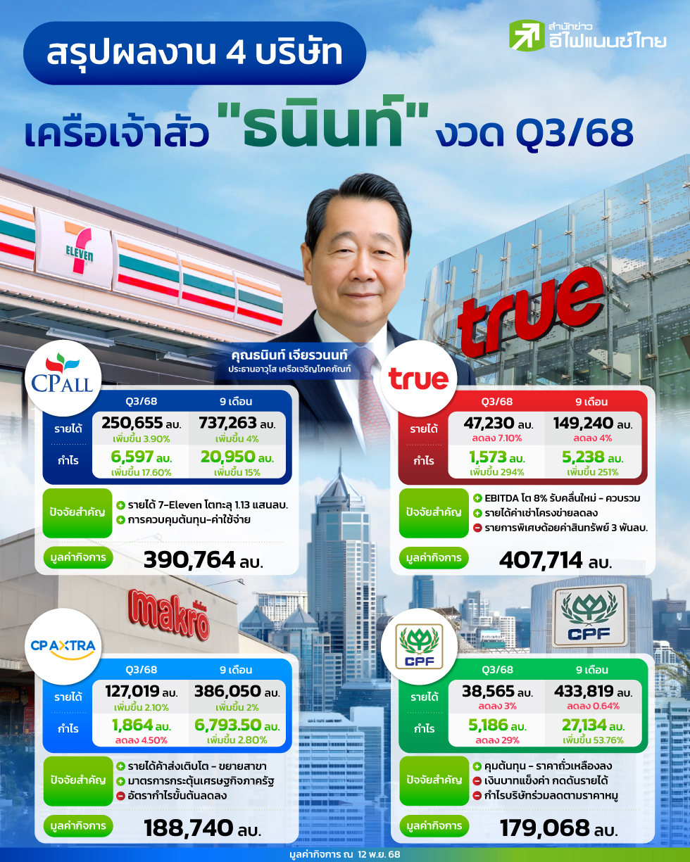star_borderModal Upgrade Packageสรุปผลงาน 9 เดือนปี 68 กลุ่มไทยยูเนี่ยนTU, ITC, TFM ช่วง Q3/68 TU กำไร 1,304 ลบ. เดินหน้าลดค่าใช้จ่าย ส่วน ITC กำไรโตจากออเดอร์สหรัฐฯ ขณะ TFM กำไรทำสถิติสูงสุดจากอาหารกุ้ง-ปลา6 Nov 2025 15:58