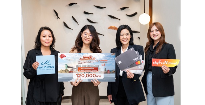 สำนักข่าวอีไฟแนนซ์ไทย- -5 ก.พ. 68 10:44 น. นางสาววริษฐา พัฒนรัชต์ (ที่สองจากขวา) ผู้บริหารสูงสุดฝ่ายการตลาดบัตรเครดิต “เคทีซี” หรือ บริษัท บัตร กรุงไทย จำกัด (มหาชน) ร่วมกับนางสาวธันยพร โดษะนันท์ (ขวา) ผู้จัดการฝ่ายพัฒนาผลิตภัณฑ์ บริษัท สกายฟัน ทราเวล และ นางสาว ฐิติทิพย์ ธัญกุลทิพย์ (ซ้าย) ประธานเจ้าหน้าที่บริหารบริษัท มัลดีฟส์ ทราเวล เอ็กซ์เพิร์ทส จำกัด ร่วมมอบรางวัลที่ 1 แพ็กเกจแพ็กเกจที่พักสุดหรูห้อง Ocean Villa จำนวน 2 คืน พร้อมบัตรรับประทานอาหารสำหรับ 2 ท่าน ณ รีสอร์ท ฮูราวาลี มัลดีฟส์ (Hurawalhi