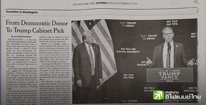 สำนักข่าวอีไฟแนนซ์ไทย- -17 ม.ค. 68 15:16 น. สำนักข่าวรอยเตอร์ รายงานว่า นายสก็อต เบสเซนต์ ซึ่งเป็นผู้ที่ได้รับเสนอชื่อจากว่าที่ประธานาธิบดีโดนัลด์ ทรัมป์ ให้ดำรงตำแหน่งรัฐมนตรีว่าการกระทรวงการคลังสหรัฐฯ ประกาศให้คำมั่นว่าจะหนุนสกุลเงินดอลลาร์สหรัฐฯ ให้เป็นสกุลเงินหลักในระบบทุนสำรองของโลก พร้อมให้ธนาคารกลางสหรัฐฯ(เฟด)คงความเป็นอิสระ รวมไปถึงการขู่ว่า พร้อมที่จะบังคับใช้มาตรการคว่ำบาตรที่เข้มงวดมากขึ้นต่อน้ำมันของรัสเซีย พร้อมกันนี้ นายเบสเซนต์ ยังเน้นย้ำถึงความจำเป็นเร่งด่วน ในการขยายการลดภาษีบุคคลของทรัมป์จากปี