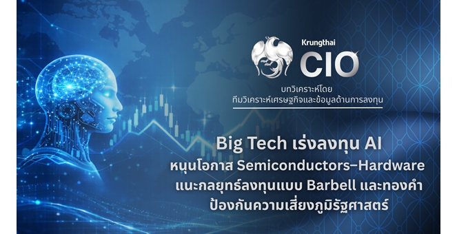 star_borderModal Upgrade PackageKrungthai CIO ชี้ Big Tech เร่งลงทุน AI หนุนโอกาส Semiconductors–Hardware ขณะ “Monetization” เป็นตัวชี้ขาด แนะกลยุทธ์ลงทุนแบบ Barbell รองรับกระแส Rotation ตลาด และลงทุนในทองคำป้องกันความเสี่ยงภูมิรัฐศาสตร์10 Feb 2026 16:22
