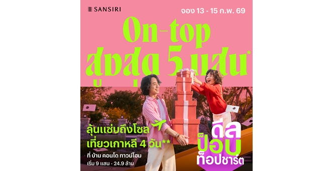 star_borderModal Upgrade Packageแสนสิริ เสิร์ฟดีลฉ่ำรับวาเลนไทน์! กับโปร `DEAL POP TOP CHART แซ่บถึงโซล` ลุ้นแพ็กเกจเที่ยวเกาหลีฟรี 4 วัน พร้อมอัดส่วนลด ON-TOP สูงสุด 5 แสน* 13-15 ก.พ. นี้เท่านั้น!10 Feb 2026 14:20
