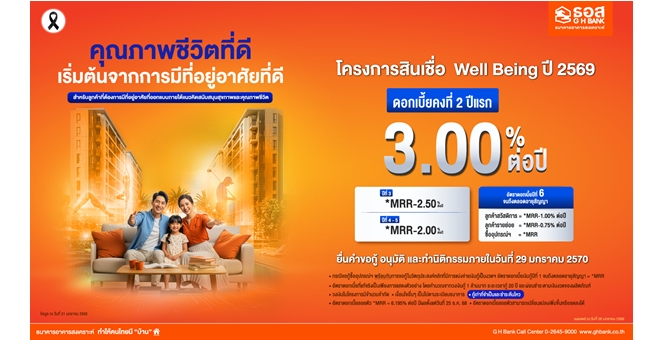star_borderModal Upgrade Packageธอส. ใส่ใจสุขภาพลูกค้าและประชาชนควบคู่กับการมีบ้านเป็นของตนเอง จัดทำสินเชื่อ Well Being ปี 2569 อัตราดอกเบี้ย 2 ปีแรกเพียง 3.00 % ต่อปีเท่านั้น26 Jan 2026 14:48
