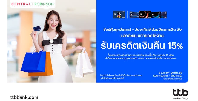 star_borderModal Upgrade Packageบัตรเครดิต ttb ชวนช้อปสุดคุ้มทุกสุดสัปดาห์ที่ห้างสรรพสินค้าเซ็นทรัลและโรบินสัน แลกคะแนนเท่ายอดใช้จ่าย รับเครดิตเงินคืน 15% พร้อมแบ่งชำระ 0% นานสูงสุด 10 เดือน22 Jan 2026 14:59