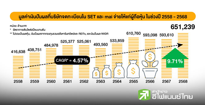star_borderModal Upgrade Packageหุ้นไทยปันผลปี 68 ทะลุ 6.5 แสนลบ. ทำสถิติสูงสุดเป็นประวัติการณ์ พลังงาน-แบงก์-ไอที จ่ายสูงสุด15 Jan 2026 15:39