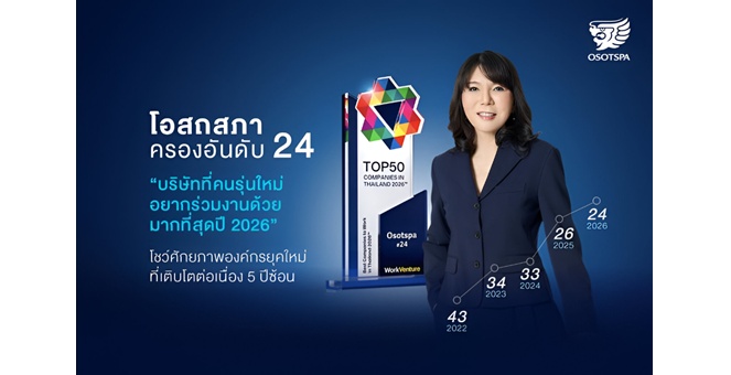 star_borderModal Upgrade Packageโอสถสภา ครองอันดับ 24 “บริษัทที่คนรุ่นใหม่อยากร่วมงานด้วยมากที่สุดปี 2026” โชว์ศักยภาพองค์กรยุคใหม่ที่เติบโตต่อเนื่อง 5 ปีซ้อน15 Jan 2026 11:59