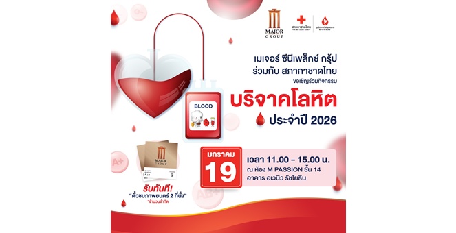 star_borderModal Upgrade Packageเมเจอร์ ซีนีเพล็กซ์ กรุ้ป ผนึกพลังสภากาชาดไทย ชวนร่วม `ทำบุญใหญ่รับปีใหม่` บริจาคโลหิต รับฟรีตั๋วหนัง 2 ที่นั่งแทนคำขอบคุณ15 Jan 2026 12:14