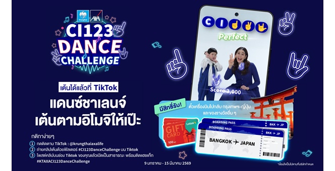 star_borderModal Upgrade Packageกรุงไทย-แอกซ่า ประกันชีวิต พร้อมน้องเกล และคุณชมพู่ ชวนทุกท่าน ร่วมแดนซ์กับกิจกรรม CI 123 Dance Challenge ลุ้นรางวัลใหญ่บินลัดฟ้าสู่ญี่ปุ่น14 Jan 2026 15:07