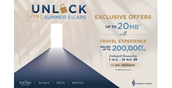 star_borderModal Upgrade Packageสิงห์ เอสเตท รุกตลาดลักชูรี ส่งแคมเปญ ‘Unlock Your Summer S-Cape’ มอบความเอ็กซ์คลูซีฟสูงสุดกว่า 20 ล้านบาท พร้อมทริปพักผ่อนหรูโรงแรมในเครือ2 เม.ย. 2569 10:13 น.