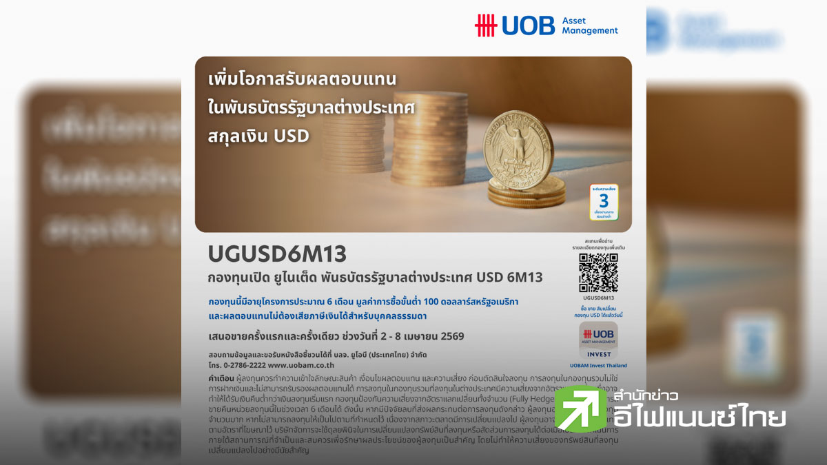 star_borderModal Upgrade Packageบลจ.ยูโอบี เสนอโอกาสการลงทุนในพันธบัตรภาครัฐบาลต่างประเทศสกุลเงินดอลลาร์สหรัฐ กองทุน`UGUSD6M13` IPO 2-8 เม.ย.692 เม.ย. 2569 10:32 น.