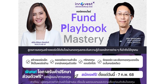 star_borderModal Upgrade Package“InnovestX” ชวนคนไทยเข้าคอร์สออนไลน์ “Fund Playbook Mastery” เรียนรู้สูตรลงทุนง่ายๆ แต่เห็นผล เพื่อสร้างพอร์ตให้เติบโตผ่านกองทุน สมัครฟรี! ตั้งแต่วันนี้ ถึง 7 ก.พ. 6830 Jan 2025 10:42
