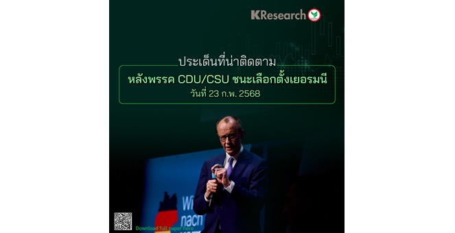 star_borderModal Upgrade Packageศูนย์วิจัยกสิกรฯ มองประเด็นที่น่าติดตามหลังพรรค CDU/CSU ชนะการเลือกตั้งเยอรมนีวันที่ 23 ก.พ. 6826 Feb 2025 17:13