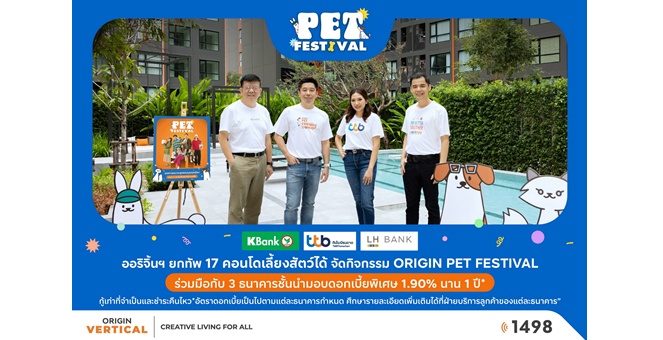 star_borderModal Upgrade Packageออริจิ้น เวอร์ติเคิล ยกทัพ 17 คอนโดคุณภาพ จัดกิจกรรม ORIGIN PET FESTIVAL ดึง 3 ธนาคารชั้นนำมอบดอกเบี้ยพิเศษ 1.90% นาน 1 ปี* สำหรับลูกค้าที่โอนกรรมสิทธิ์ภายใน 31 มี.ค.นี้28 Feb 2025 15:19