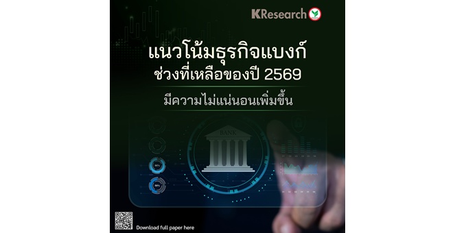 star_borderModal Upgrade Packageศูนย์วิจัยกสิกรไทย มองแนวโน้มธุรกิจแบงก์ช่วงที่เหลือของปี 2569 มีความไม่แน่นอนเพิ่มขึ้น24 Apr 2026 17:07
