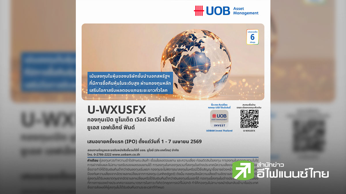 star_borderModal Upgrade Packageบลจ.ยูโอบี เปิดตัวกองทุนเปิด ยูไนเต็ด เวิลด์ อิควิตี้ เอ็กซ์ ยูเอส เอฟเอ็กซ์ ฟันด์ (U-WXUSFX) เสนอขายครั้งแรก 1–7 เม.ย.691 Apr 2026 13:04