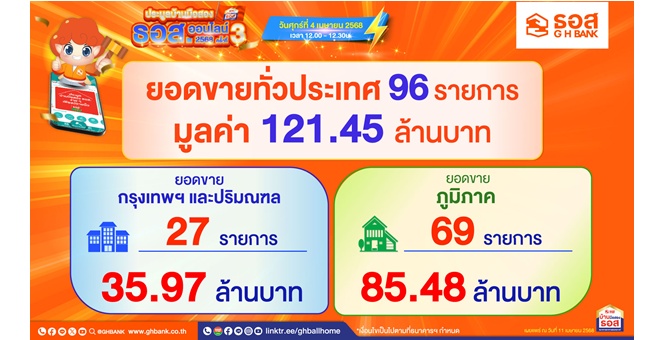 star_borderModal Upgrade Packageธอส. เผยผลประมูลบ้านมือสองออนไลน์ ประจำเดือนเมษายน 2568 จำหน่ายได้ 96 รายการ มูลค่ารวม 121.45 ล้านบาท11 Apr 2025 12:23
