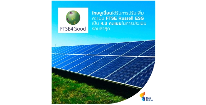 • ไทยยูเนี่ยนได้รับการปรับเพิ่มคะแนน ESG จาก FTSE Russell ตอกย้ำความก้าวหน้าด้านความยั่งยืนและความเชื่อมั่นในกลุ่มนักลงทุน