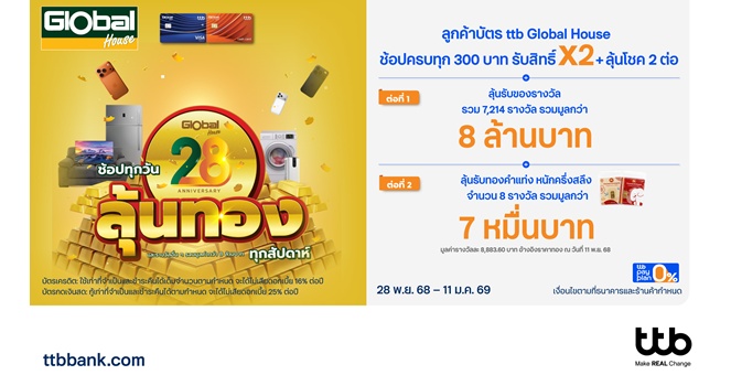star_borderModal Upgrade Packageบัตร ttb Global House ช้อปทุกวัน ลุ้นทองทุกสัปดาห์ รับสิทธิ์ลุ้นรางวัล 2 ต่อ รวมมูลค่ากว่า 8 ล้านบาท18 Dec 2025 14:42