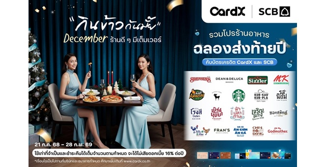 star_borderModal Upgrade PackageCardX จับอินไซต์ปลายปี ส่งแคมเปญ “กินข้าวกันมั๊ย December ร้านดี ๆ มีเต็มเวอร์” รวมดีลร้านดังส่งท้ายปี รับส่วนลดพร้อมเครดิตเงินคืนรวมสูงสุด 31%*/** ตอบโจทย์ไลฟ์สไตล์การกิน18 Dec 2025 15:13