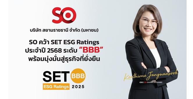star_borderModal Upgrade PackageSO คว้า SET ESG Ratings ปี 68 ระดับ “BBB” พร้อมมุ่งมั่นสู่ธุรกิจที่ยั่งยืน16 Dec 2025 12:50