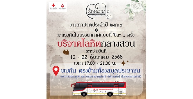 star_borderModal Upgrade Packageร้อยดวงใจปวงประชา น้อมสำนึกพระเมตตา องค์สภานายิกาสภากาชาดไทย ส่งต่อการให้ บริจาคโลหิตกลางสวน งานกาชาดประจำปี 256812 Dec 2025 12:23