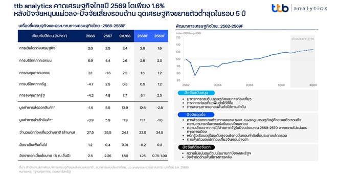 star_borderModal Upgrade Packagettb analytics คาดเศรษฐกิจไทยปี 2569 โตเพียง 1.6% หลังปัจจัยหนุนแผ่วลง11 Dec 2025 15:49