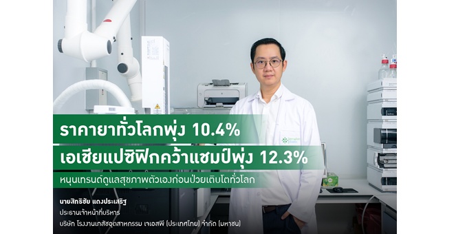 star_borderModal Upgrade PackageJSP เผยราคายาทั่วโลกพุ่ง 10.4% เอเชียแปซิฟิกคว้าแชมป์พุ่ง 12.3% หนุนเทรนด์ดูแลสุขภาพตัวเองก่อนป่วยเติบโตทั่วโลกดันยอดขายอาหารเสริมปีนี้แตะ 1,000 ลบ.11 Dec 2025 12:42