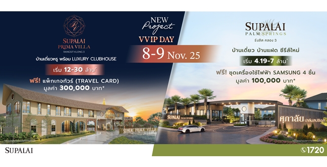 star_borderModal Upgrade Packageศุภาลัย ส่งซีรีส์ใหม่ “Romantic Charm” ครั้งแรกบนทำเลรังสิต–คลอง 3 กับ 2 โครงการบ้านเดี่ยวคุณภาพ พรีมา วิลล่า และ ปาล์มสปริงส์ พร้อมโปรสุดเอ็กซ์คลูซีฟในงาน VVIP DAY เท่านั้น!4 Nov 2025 10:56