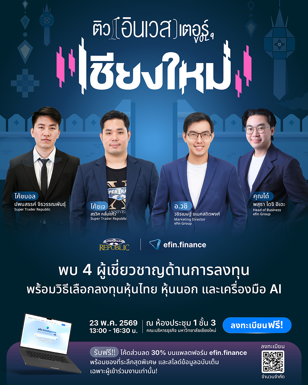 นักลงทุนชาวเหนือห้ามพลาด! ยกระดับการลงทุนสู่ยุค AI ไปกับ efin.finance พร้อมเจาะลึกกลยุทธ์จัดพอร์ตรับมือเศรษฐกิจยุคใหม่แบบ Exclusive