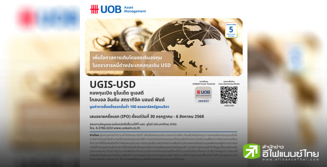 • บลจ.ยูโอบี เปิด IPO กองทุน UGIS-USD โอกาสลงทุนในตราสารหนี้ทั่วโลก รับผลตอบแทนสกุลเงินดอลลาร์สหรัฐ