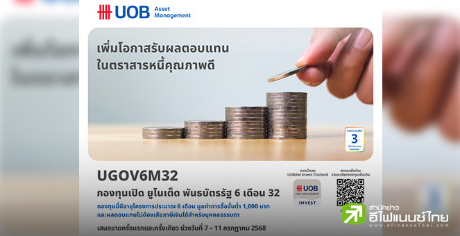 • บลจ.ยูโอบี เสนอโอกาสลงทุนในพันธบัตรภาครัฐ กองทุนเปิด ยูไนเต็ด พันธบัตรรัฐ 6 เดือน 32 (UGOV6M32) IPO 7-11 ก.ค.68