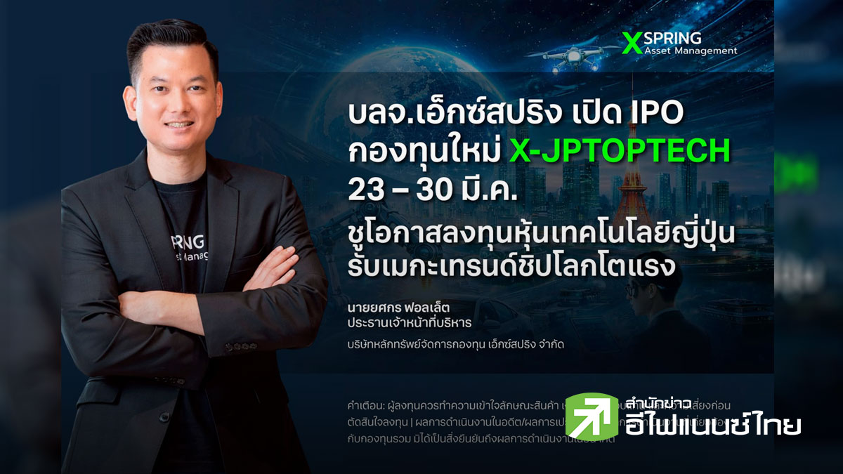 star_borderModal Upgrade Packageบลจ.เอ็กซ์สปริง เปิด IPO กองทุนใหม่ X-JPTOPTECH 23–30 มี.ค. ชูโอกาสลงทุนหุ้นเทคโนโลยีญี่ปุ่น รับเมกะเทรนด์ชิปโลกโตแรง23 มี.ค. 2569 12:56 น.