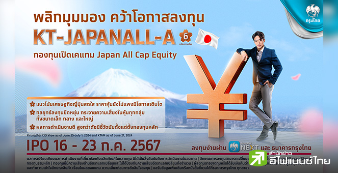 star_borderModal Upgrade PackageKTAM คว้าโอกาสการลงทุนจากหุ้นญี่ปุ่นทุกขนาด เปิดขาย “KT-JAPANALL” 16-23 ก.ค. นี้15 Jul 2024 14:25